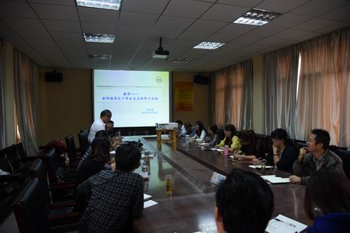 首先徐教授做了“教学——老师指导之下学生自主的学习活动”的主题培训,内容包括教学规矩、教学理念、教学设计、教学方法等内容,重点分析了三种以学为主的教学方法,即项目教学法、案例教学法、任务驱动教学法,徐教授列举了大量的教学案例,两个小时的培训深入浅出,教师们受益匪浅。