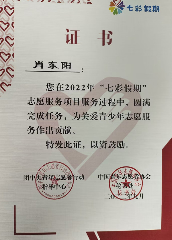 11月6日,师范学院收到团中央寄来的25张“七彩假期”志愿服务表彰证书。该院打铁趁热,迅速召开了“七彩假期”志愿服务活动总结会暨表彰大会。