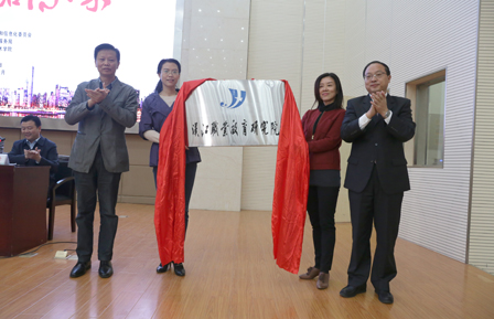 襄阳市市委常委、统战部部长李跃华,我校书记蔡泽寰教授、校长李菲等出席论坛开幕式。随后,襄阳市市委常委、统战部部长李跃华同志和我校校长李菲同志共同为“汉江职业教育研究院”揭牌。