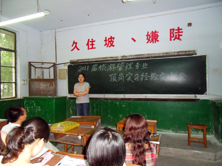 根据教学计划安排,经济管理学院、旅游服务学院2011届毕业生于2011年6月12日统一返校,6月14日上午,由各研究室组织举办了2011届毕业顶岗实习交流会。