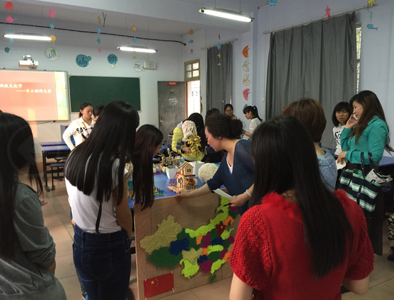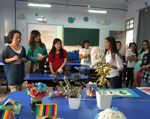 本次活动作品主要涉及折纸、教具、花球、剪纸、扣子画、钉子画、青花瓷台灯系列等,充分展示了各专业学生的聪明才智,表现了他们别具匠心的手工制作水平,同时也放映了他们对人生、生命主题的思考。展示完毕后,老师们对每一件作品分别进行了专业的评价,并且提出了宝贵的建议。