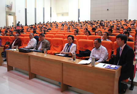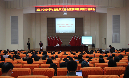 9月26日下午,学校2013-2014学年教学工作会暨教师教学能力培训会在慎思楼2号学术报告厅召开。校党委书记梁建华同志、校长蔡泽寰教授和其他在家校领导、学校全体正科以上干部、督导专家及专任教师等近500人参加了本次会议。会议由教务处副处长王保成同志主持。