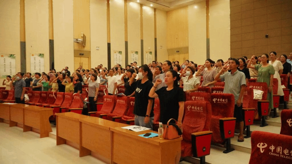 吴卫明代表学校致欢迎辞;李红梅代表学员发言表明学习决心;王俊说明此次培训的政策背景、目的、意义等内容;徐蕊领誓从教誓词,老师们一起庄严承诺;陈文俊代表授课教师作出郑重承诺,并对培训授课的教学形式、课程安排和学习要求作了说明。