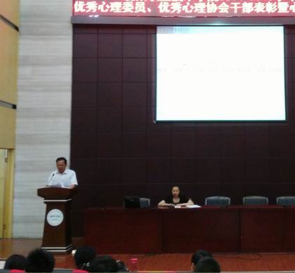 为深入细致地开展学校心理健康教育工作,更好地发挥我校心理委员、心理协会干部的积极带头作用,学工处于5月7日晚在慎思楼举办了2014-2015学年度优秀心理委员、优秀心理协会干部表彰暨心理委员培训活动。活动由心理咨询中心主任杨云主持,出席此次活动的有学校党委委员赵涛、学工处处长王保成、学工处副处长张丹、各院(部)学工领导、全体心理辅导老师及各班级心理委员。