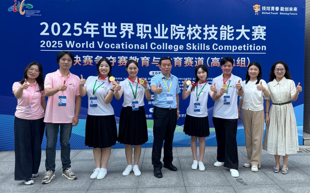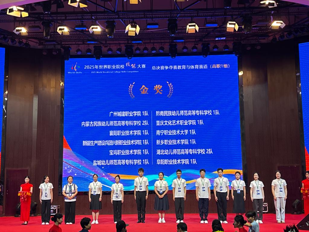8月31日,2025年世界职业院校技能大赛总决赛争夺赛教育与体育赛道(高职1组、高职3组)比赛圆满落幕。我校师范学院代表队与来自全国高职院校的166支队伍同场竞技,表现卓越,最终荣获该赛道金奖,充分展示了我校在职业教育领域的雄厚实力与人才培养的高质量成果。
