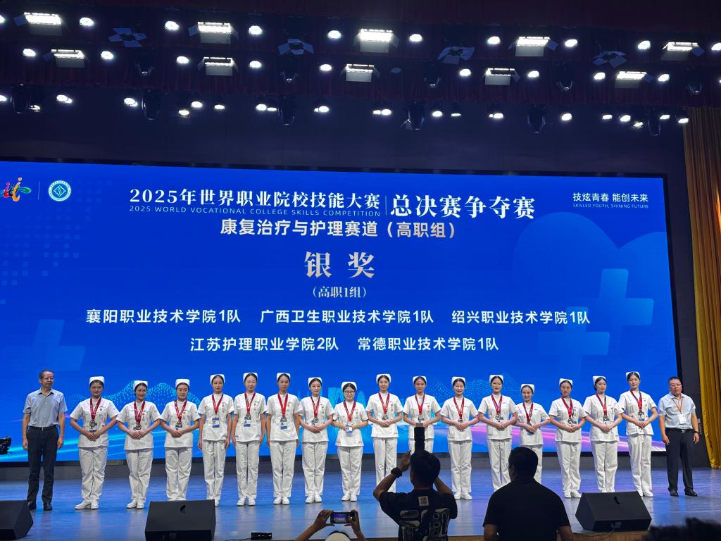 2025年世界职业院校技能大赛总决赛争夺赛康复治疗与护理赛道(高职组)比赛于8月30日在苏州落下帷幕。襄阳职业技术学院护理专业代表队以646分的优异成绩荣获银奖(在所有银奖获奖院校中排名第一)。