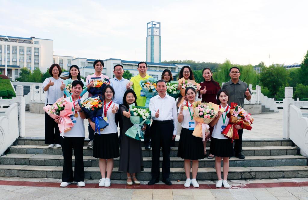 鲜花簇拥,掌声雷动。2025月8日31日,在2025年世界职业院校技能大赛荣获金奖的师范学院师生团队载誉归来,校长余荣宝、纪委书记杨华、教务处处长冯依锋迎接并致以热烈祝贺。这支由学前教育专业苏昌鋆、琚梓怡、曹天赐、白蔷四位同学组成的代表队,在众多顶尖选手的激烈角逐中脱颖而出,勇夺金奖,实现我校在教育与体育赛道世赛舞台上的历史性突破。