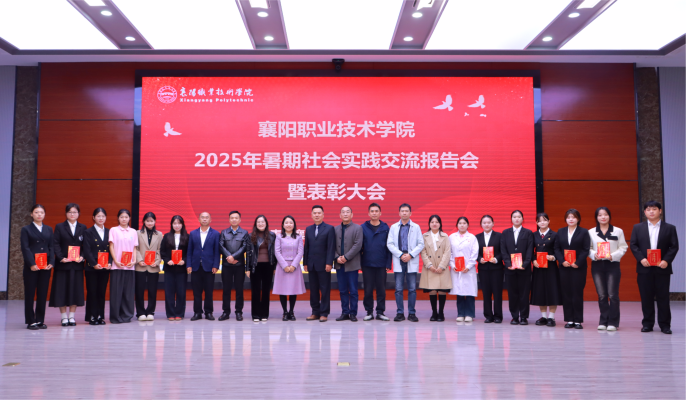 汇报完毕,学工处副处长周敏宣读了《襄阳职业技术学院关于表彰2024—2025学年大学生暑期社会实践活动优秀组织单位、优秀团队、优秀指导教师、先进个人的通知》。与会领导为获得表彰的优秀组织单位、优秀团队、优秀指导教师、先进个人颁发荣誉证书。