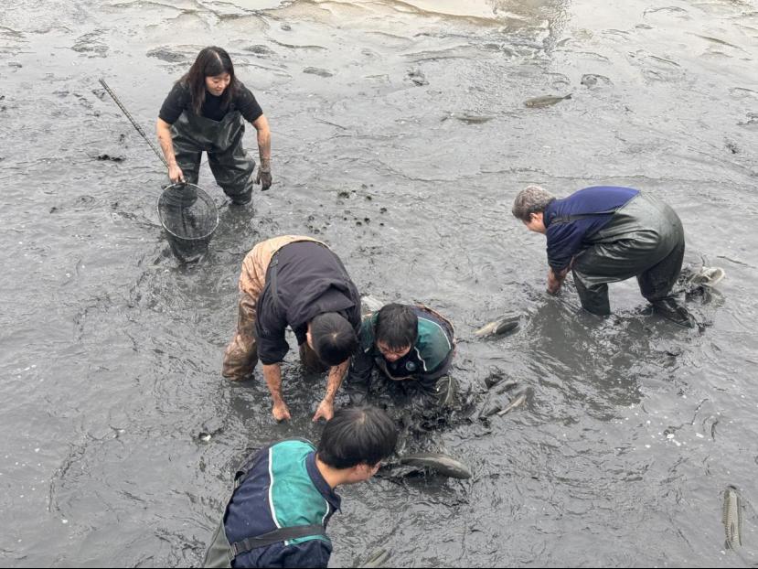 随着一声令下,大家或徒手围捕,或协作围堵,现场此起彼伏的欢呼声、呐喊声交织在一起,充分体验着亲近自然、动手劳作的乐趣。不少同学虽浑身沾满泥水,却依旧笑容满面,亲手捕获的鲜鱼在手中扑腾,满满的成就感溢于言表。