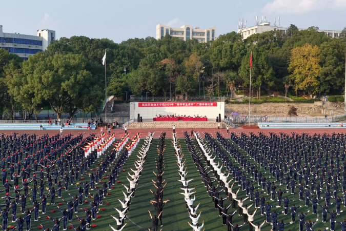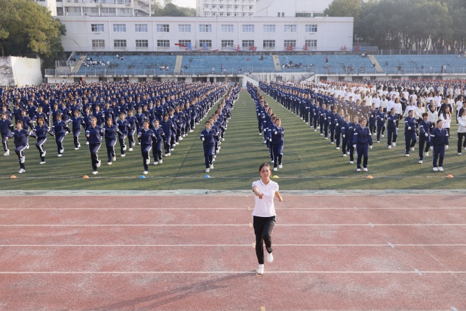 陈礼龙宣布比赛正式开始。随后,由各分工会教师代表与千余名学生组成的联合方阵整齐列队,伴随着第九套广播操音乐的旋律,共同进行了展示。师生动作同步,舒展有力,生动诠释了“陪伴学生成长”的赛事主题与襄职校园的和谐氛围。