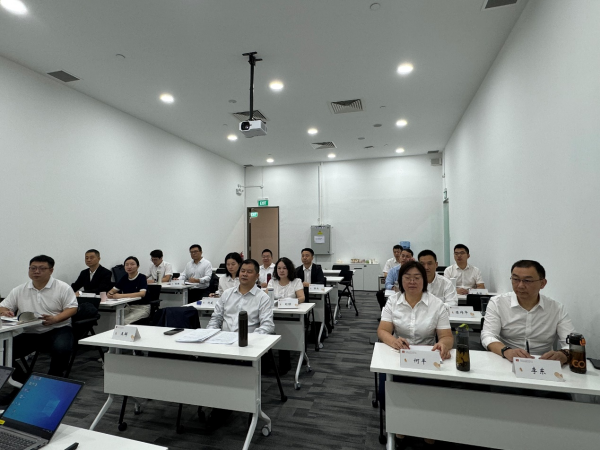 培训团在开班仪式后,听取新加坡教育部前司长颜振发授课