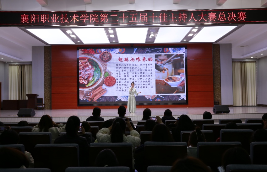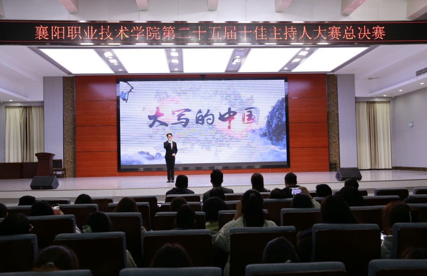 为深入践行新时代美育工作要求,丰富校园文化生活,提升学生审美感知、文化表达与综合素养,11月20日晚,学校第二十五届十佳主持人大赛在智能制造大楼四楼报告厅举行。襄阳广播电视台资深主持人、国家一级播音员主持人王坤,襄阳融媒体中心主持人、国家二级播音员主持人樊果果、田地,学校学工处处长但耀卿、副处长朱杰担任评委。