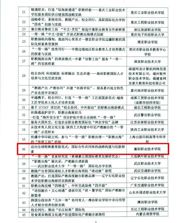 学校一案例入选中华职教社国际交流合作优秀案例
