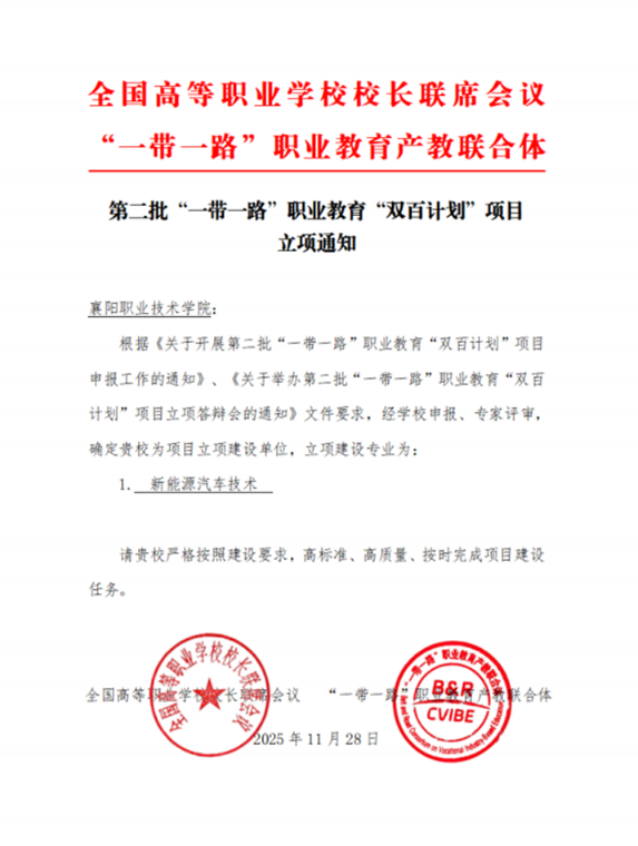 我校申报的项目紧密对接新能源汽车产业“走出去”战略,是服务“东风出海”、打造高水平职教品牌的重要抓手。项目精准对接“一带一路”中资企业用人需求与属地化人才培养目标,通过联合海外院校及中资企业共建“荆楚工坊”,致力于实现国家战略、产业需求、职业教育国际化与海外属地化人才供给的贯通模式,最终形成“产业引领出海、教育赋能人才、模式可持续输出”的职教出海新范式,为“一带一路”建设提供坚实的人才支撑与智力支持。