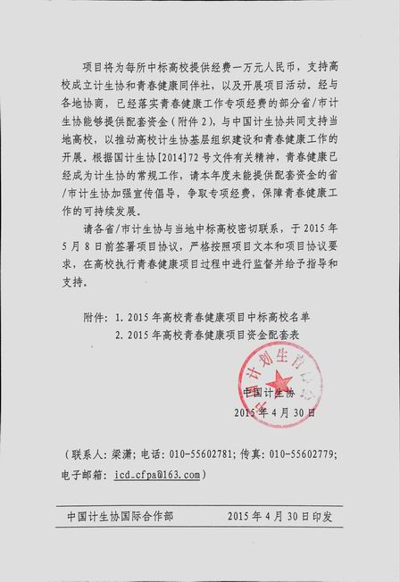 近日,从中国计划生育协会传来喜讯,我校心理咨询中心陈晓莉老师主持的 “以健康致青春”高校青春健康教育项目获得国家级立项,并获资助资金1万元。此次获得立项的湖北省高校共9所。