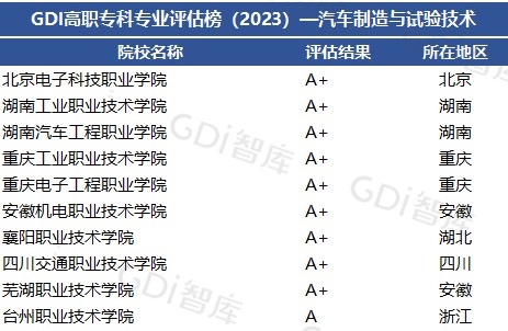 在2月15公布的“GDI高职专科专业评估榜(2023)”中,汽车工程学院汽车制造与试验技术专业在全国453个专业点中排名第七,成为9个A+专业之一。