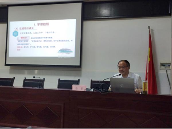 李菲以《努力做一名职业院校的好老师》为题,从“逐梦:立志做一名好老师;笃行:好老师的成长路径;坚守:好老师的教育理性;相长:立己立人达己达人”四个方面展开阐述。从好老师的标准到如何成长为好老师,从如何坚守教育理性到如何达己达人,李校长讲课引经据典,既有理论高度,更有丰富的教育实践。老师们专注聆听,认真学习。互动环节,老师们踊跃提问,李校长一一解惑。