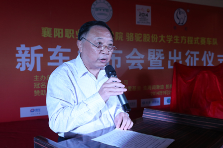 9月29日在汽车实训中心,汽车工程学院举行了2014襄阳职业技术学院骆驼股份大学生方程式赛车新闻发布会,校长蔡泽寰教授、副校长肖练武教授,副校长程光富、骆驼股份有限公司负责人叶立虎、江济鄂,易车公司、淮海润滑油、昆仑润滑油、郎搏万、IMK 日昇单车坊等企业代表和学校相关部门负责人参加了此次新闻发布会,会议由汽车工程学院院长耿保荃主持。