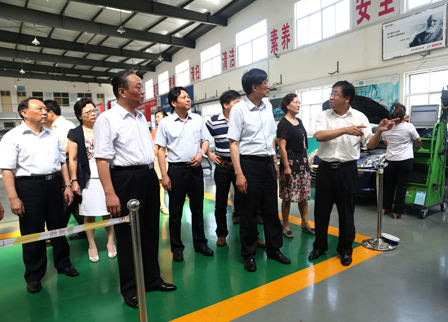 随后,专家组实地查看了我校由中央财政支持的重点专业汽车检测与维修技术、数控技术、畜牧兽医等专业的实训室,按照《教育部办公厅 财政部办公厅关于做好“国家示范性高等职业院校建设计划”骨干高职院校建设项目2013年验收工作的通知》要求,以学校《建设方案》和《项目建设任务书》为依据,对项目建设总体目标、主要内容、资金预算执行和绩效等进行了询问和座谈,审阅了相关材料。