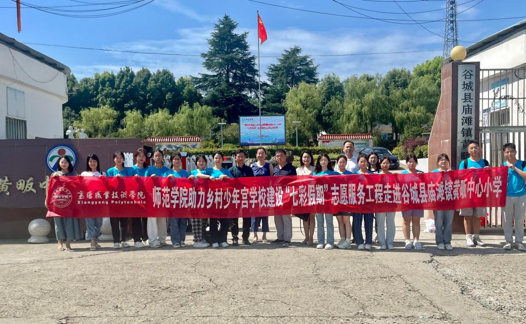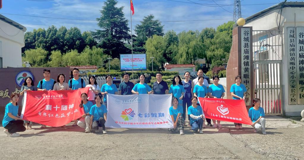 7月8日,学校组织部部长武雪慧,学工处副处长赵良虎,师范学院党总支书记张丹等一行7人,陪伴带领[1+]青年志愿者协会14名队员,前往谷城县庙滩镇黄畈中心小学,开展“七彩假期”暑期支教暨“双千双进”活动。