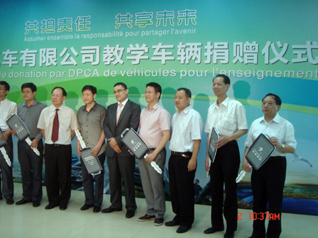 此次神龙公司向我院捐赠一台标致307整车,两台变速箱和两台发动机,总价值30余万元。学院副院长肖练武教授代表学院从神龙公司执行副总经理邱现东手中接过捐赠车辆钥匙。这是神龙公司继2007、2009年之后,第三次向我院集中捐赠教学设备。