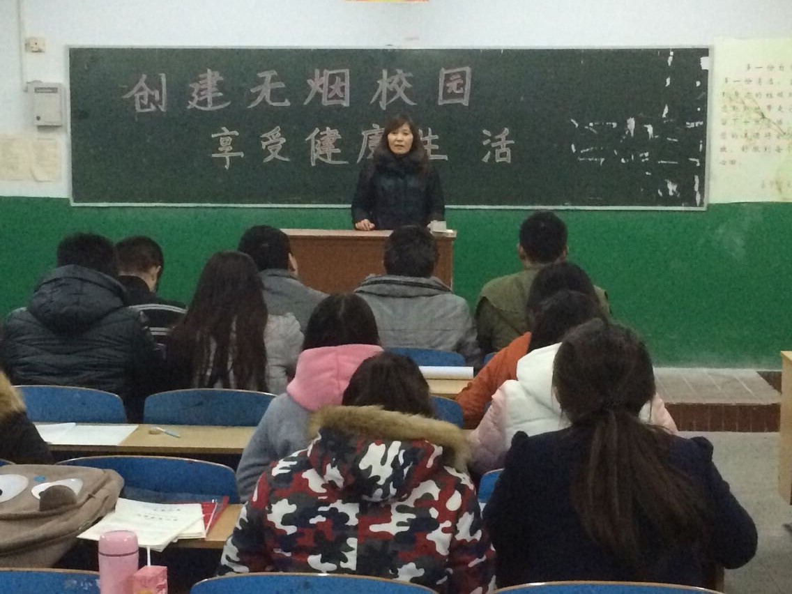 为响应学校号召,加强无烟校园的创建。2014年12月9日晚,药学1401班利用晚自习时间在南教N32P开展了名为“创建无烟校园,享受健康生活”的主题班会,对吸烟同学进行了有效劝诫。