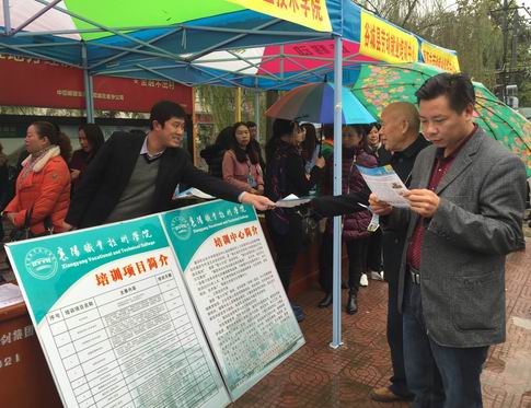 招聘会上,我校继续教育学院培训部工作人员热情耐心地为前来咨询的失业人员介绍学校基本情况和培训项目。发放培训资料100余份,有40余名咨询者做了培训意向登记。
