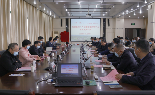 谢春修、余荣宝分别代表市人大和学校签订共建研究中心框架协议。吕义斌、陈礼龙共同为“襄阳人大预算监督研究中心”揭牌。
