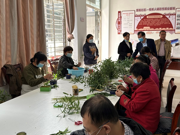 调研人员先后参观了老河口市郭阳社区、汉口路社区、酂南社区残疾人辅助性就业基地,了解残疾人就业、工作、生活情况,并与老河口市残联就下一步开展辅助性就业培训事宜进行了洽谈。