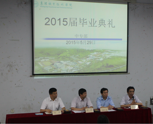 5月29日下午三点,公共课部(中专部)在明志楼举办了2012级学生毕业典礼,典礼由中专部党总支书记肖尚军同志主持,学院党委委员赵涛同志,宣传部部长叶朝同志,教务处处长刘红新同志以及中专部行政人员,全体12级班主任、毕业生、在校生代表均到场。