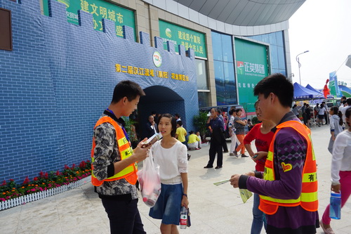此次农博会共持续了4天,在开展的第一天,又恰逢周六,整个园区内外也是迎来了人气小高峰,在熙熙攘攘的人群中,我们发现了靓丽的风景线,他们身上佩戴的胸卡,表明了他们的身份——襄阳青年志愿者。这些志愿者,放弃了周末休息时间,为农博会服务。负责农耕展区讲解工作的志愿者刘学铖,每天要把同样的讲解词,面带微笑讲解无数次,为的就是让参观者更加了解展区的文化。