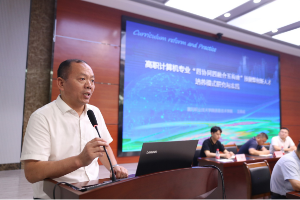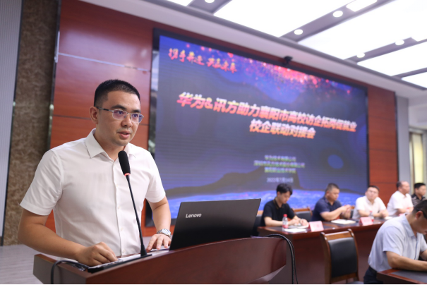 会上,信息技术学院院长王保成以《高职计算机专业“四协同四融合五构建”技能型创新人才培养模式研究与实践》为主题分享了学校信息类专业建设成果。讯方华中片区交付与服务部总监潘阳围绕公司概况、校企合作发展历程和产教融合案例等内容作出解读。