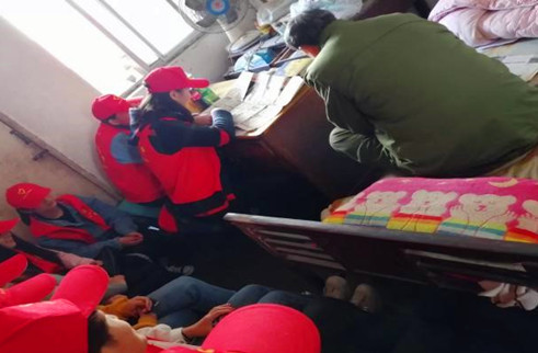 这是经济管理学院青友志愿者服务队的同学们每周例行的活动之一——利用周末休息时间,为盲人罗户远大爷读报。