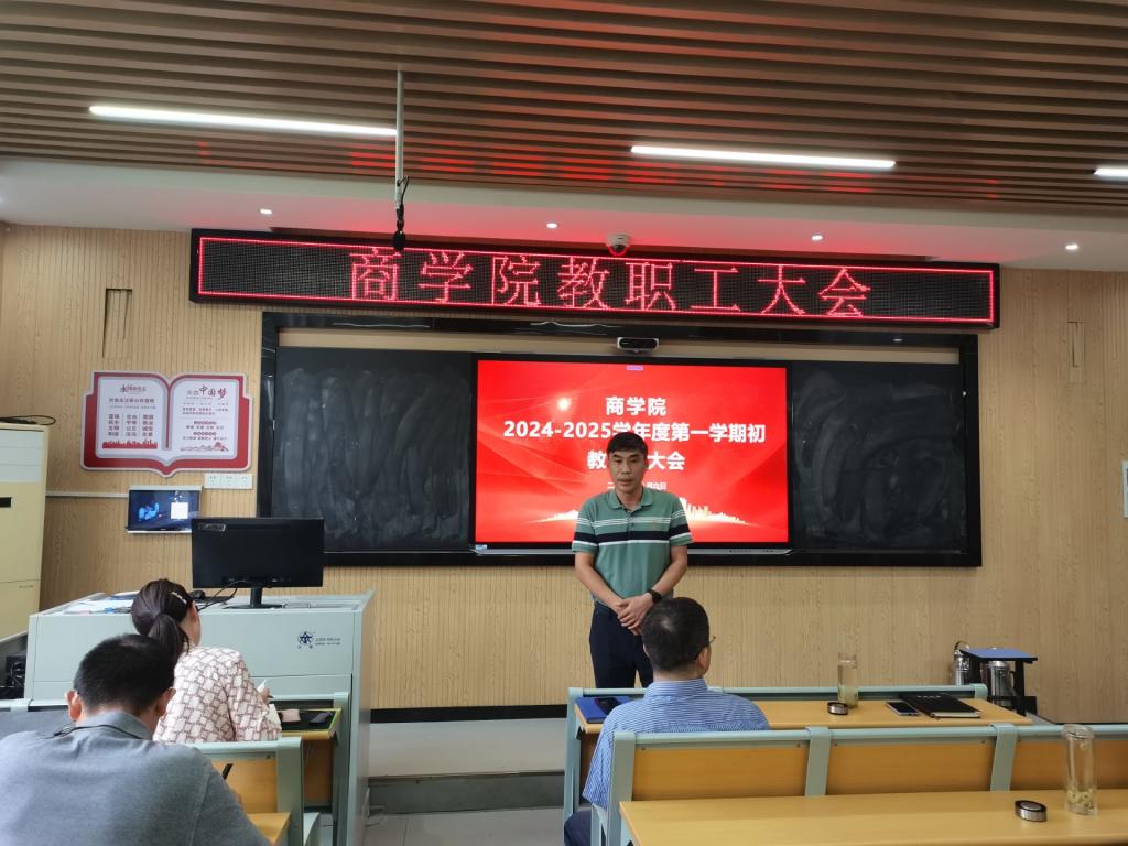 9月6日下午,商学院在笃学楼N101教室召开期初全体教职工大会。会议由院长汪博兴主持。