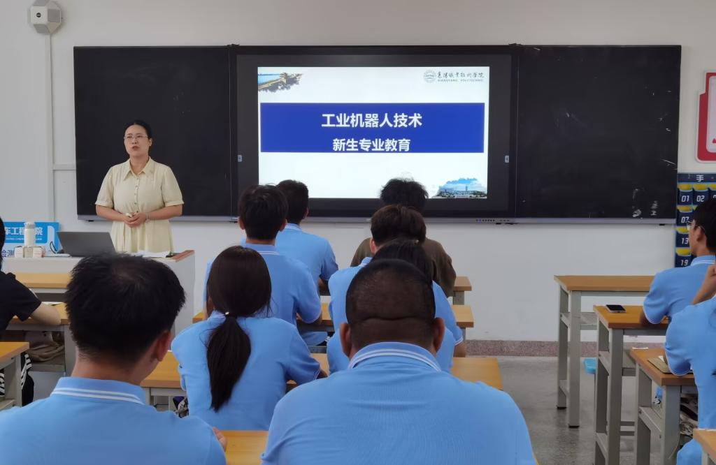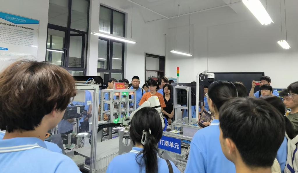 本次专业教育分为两个环节。首先是进班宣讲。各专业骨干教师按安排,点对点分别到各班教室,向新生班级介绍专业概况、专业荣誉、人才培养、职业规划等;各专业优秀毕业生代表分别以视频等方式向新生分享自己的学习、成长经历,勉励新生勤奋学习、钻研技能;最后,同学们就自己关心的专业学习等问题,和专业教师进行了互动交流。第二环节是实训基地参观。各专业教师分别带领新生班级有序参观智慧工厂、机械创新作品展示区、数控车间、机器人实训室、机器视觉实训室等实训设施,让新生了解未来学习环境,激发学生热爱专业、学习专业的兴趣和动力。