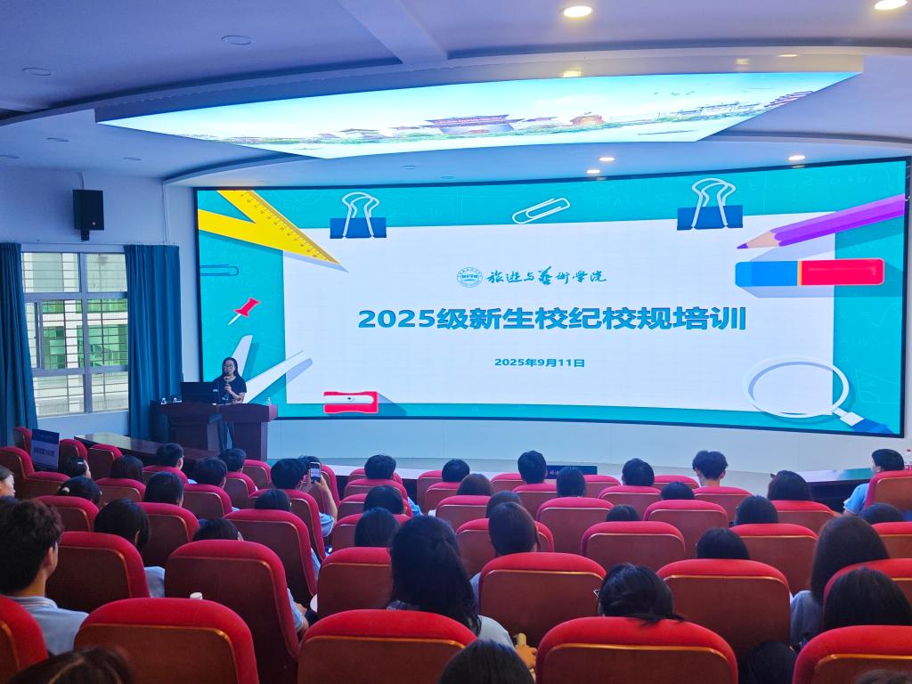 为进一步帮助新生快速适应大学生活,旅游与艺术学院学工科针对2025级新生组织开展了一系列入学教育活动,包括校纪校规培训、资助政策宣讲和征兵政策宣传。