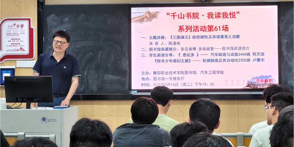 9月16日晚,“千山书院·我读我悦”第61场活动在笃学楼成功举办。湖北文理学院陈道斌老师受邀担任主讲嘉宾,带领大家深入剖析《三国演义》的悲剧性。
