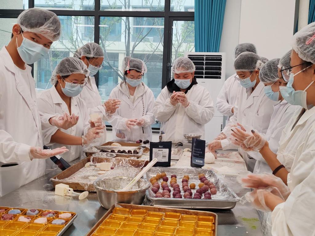 “老师的耐心指导、同学的热心帮忙,让我从手忙脚乱到熟练操作,这种温暖的陪伴感,比学会做月饼更珍贵。”2025级新生李同学手持刚脱模的月饼,脸上满是笑意。
