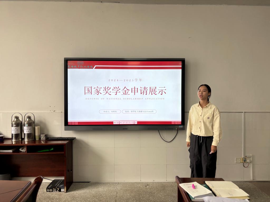 10月15日上午,商学院在笃学楼二楼会议室开展国家奖学金评审答辩会。商学院党总支书记王建宏、副院长梁光源、学生科长房莹、全体辅导员、教师代表宋姣姣出席并担任评委。