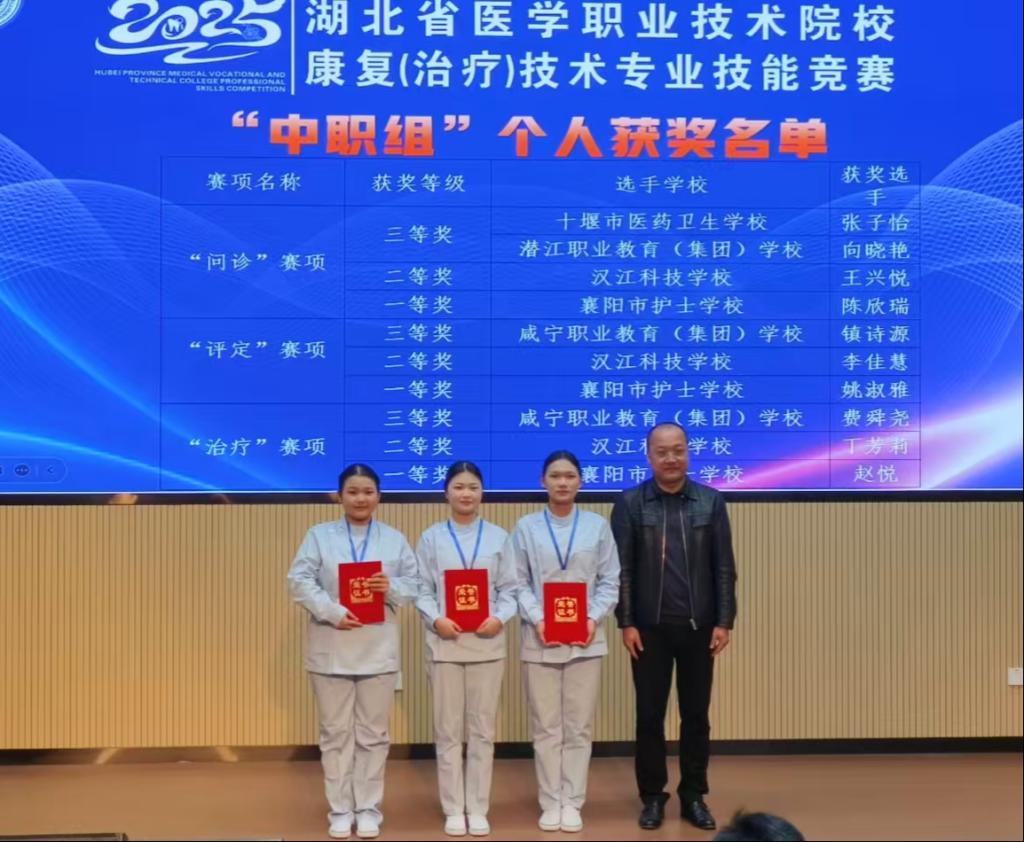 10月24日,湖北省医学职业技术院校专业技能竞赛顺利闭幕。市护士学校组队角逐康复(治疗)技术赛项,与21所中高职院校队伍同台竞技,最终凭借过硬实力一举斩获中职组团体一等奖、问诊赛项一等奖、评定赛项一等奖、治疗赛项一等奖及优秀指导教师奖,实现赛项荣誉大满贯,以亮眼成绩充分彰显了学校技能人才培养的扎实成效。