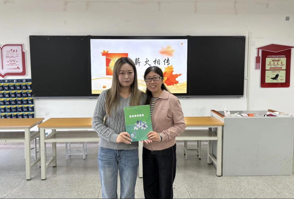 仪式上,公共计算机课程研究室教师代表徐海东介绍了王乐红老师的从教经历、突出表现和取得的成绩,并深情回忆了二人共事的美好时光;副院长曾鸿在致辞中称赞王乐红老师是“一名优秀的公共计算机课程授课老师、一名优秀的公共计算机课程研究室主任、一名优秀的教务科科员”。“薪火相传”环节中,王乐红老师将代表其职业生涯教学成果的主编教材《信息技术基础》传递到青年教师程楚佳手中,殷殷嘱托青年教师传承教学智慧与育人初心,勇于担当,砥砺奋进。