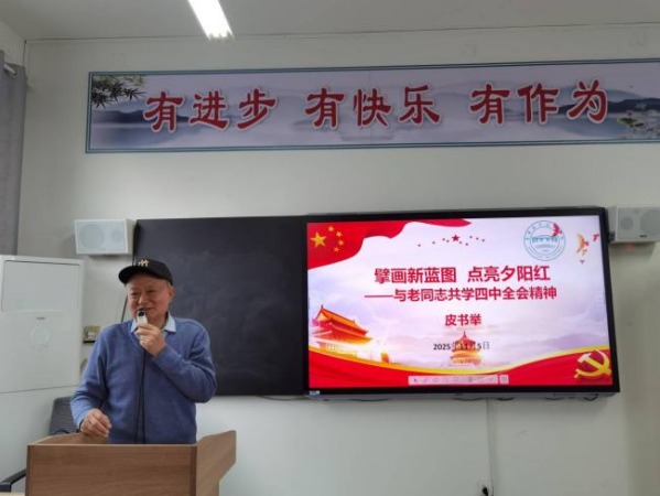 为深入学习贯彻党的二十届四中全会精神,引导学校老同志精准把握时代脉搏,11月5日下午,老年大学校长皮书举以“擘画新蓝图,点亮夕阳红”为题,为学员作专题讲座。