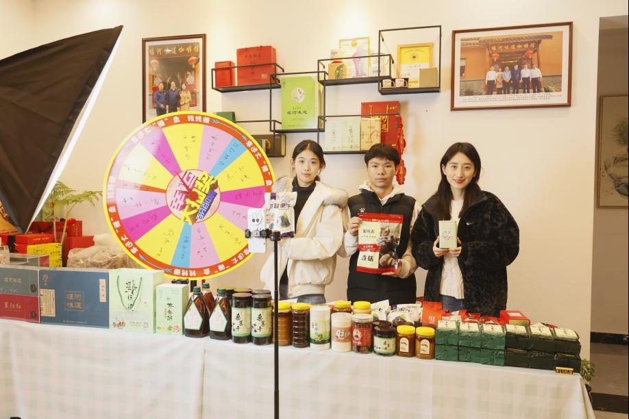 在堰河味道咖啡馆现场,商学院副院长唐卫东、专任教师侯宁远带领网络营销与直播电商2301班学生薛正勤与电子商务2401班学生左欣弘、程竞暄搭建直播带货平台,将村庄特色农产品推向更广市场。实践中,学生们不仅运用专业知识优化直播流程、讲解产品亮点,更在与村民的互动中,深刻体会 “敢闯敢干、务实担当”的堰河精神。