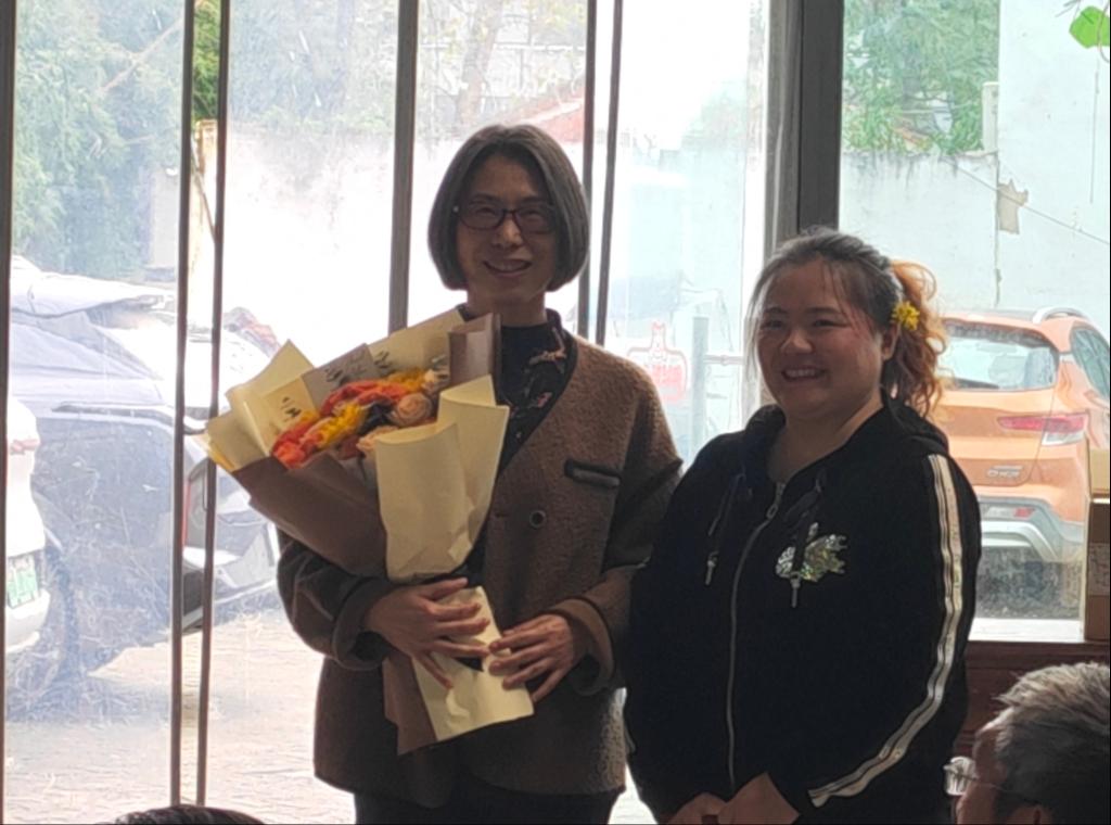 与会老师一同回顾了张晓平老师杏坛耕耘的点点滴滴,感念其多年来的默默奉献与杰出贡献。教师代表甘绪艳向张老师敬献鲜花,致以崇高的敬意与美好的祝福。公共课部党总支书记陈建波在致辞中充分肯定了张晓平老师长期以来爱岗敬业、潜心育人的卓越表现,并代表课部对她致以衷心的感谢,祝愿她退休后的生活丰富多彩、幸福安康。