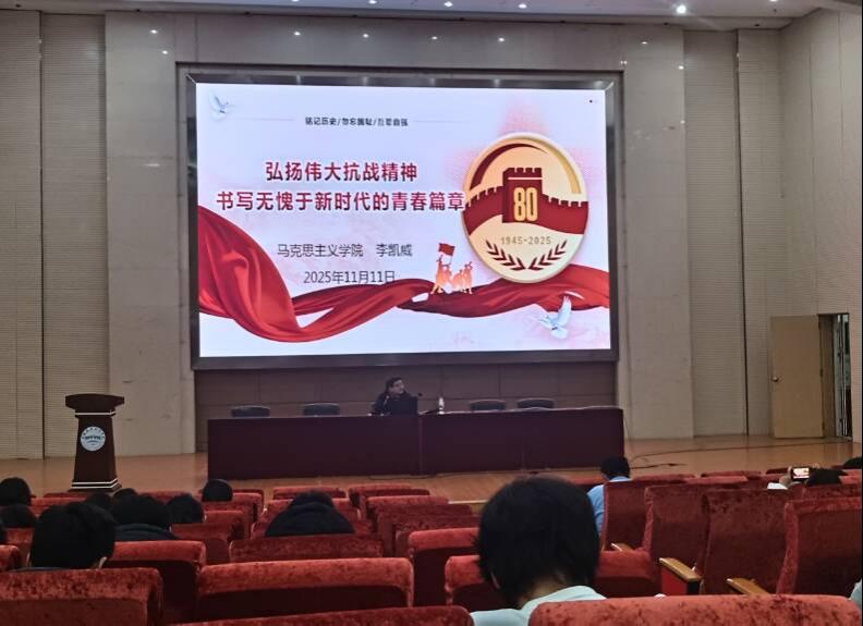 为传承红色基因,激扬奋进力量,11月11日,建筑工程学院在图书馆二号学术报告厅举办“弘扬伟大抗战精神,书写无愧于新时代的青春篇章”专题党史讲座。马克思主义学院李凯威老师受邀主讲,与现场全体建工学子一同回顾烽火岁月,共叙时代责任。