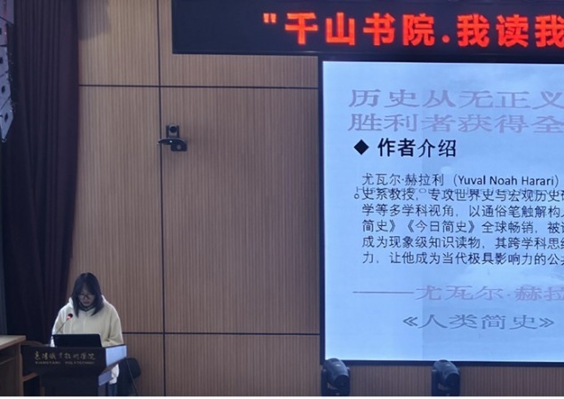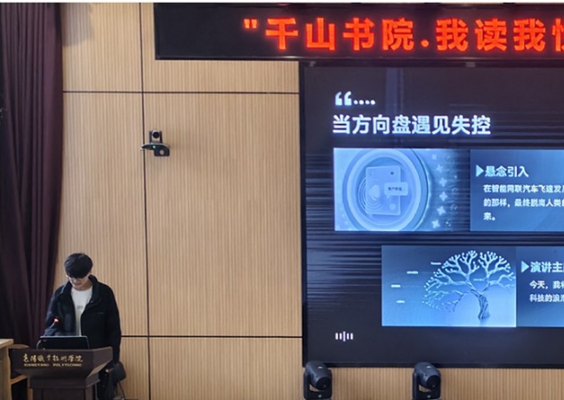 讲座后,培训讲师祝经理介绍了学校图书馆电子资源“中文在线书香中国”的使用方法,为学生拓展阅读渠道提供了实用指导。汽车工程学院机械 2501 班罗韵婕、智能网联汽车技术2502班吴宜峰分别分享了《人类简史》《失控》的阅读感悟。