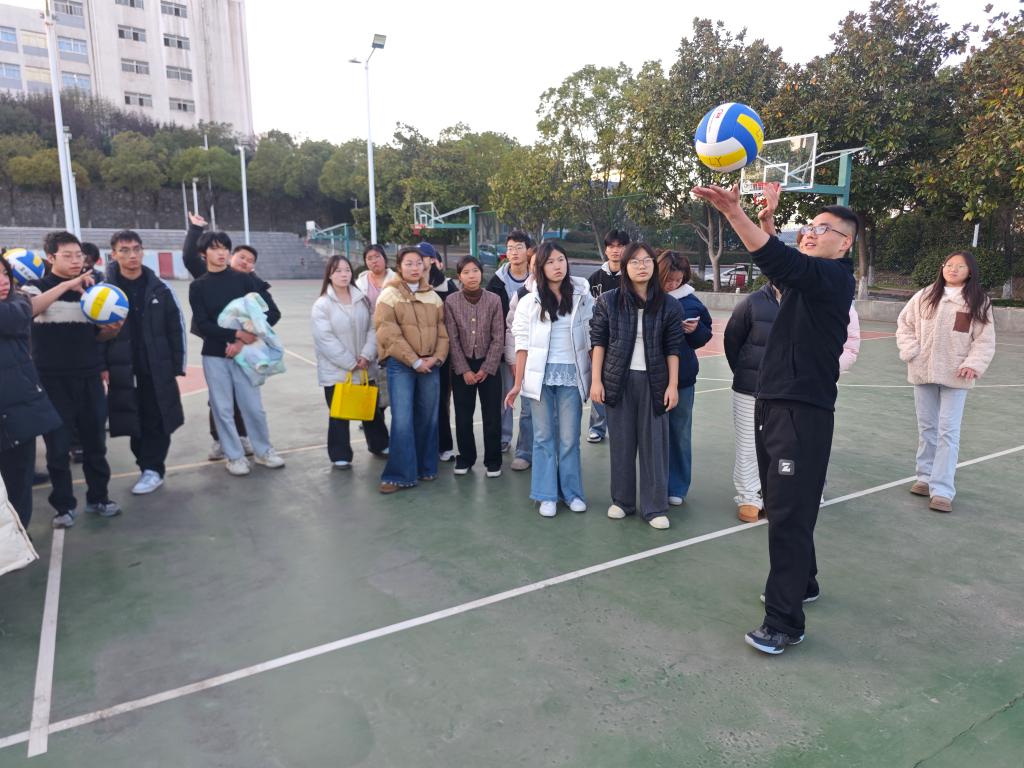 仪式完毕,项目指导老师陈凡为同学们讲解、示范了气排球的基本规则、垫球、发球等技术要领。同学们热情高涨,认真聆听,并在陈老师的带领下实践体验。