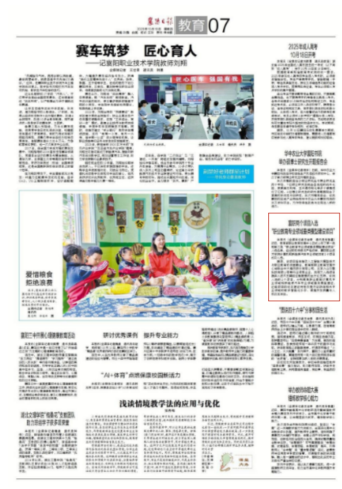 【襄阳日报】襄职两个项目入选“职业教育专业领域垂类模型建设项目”